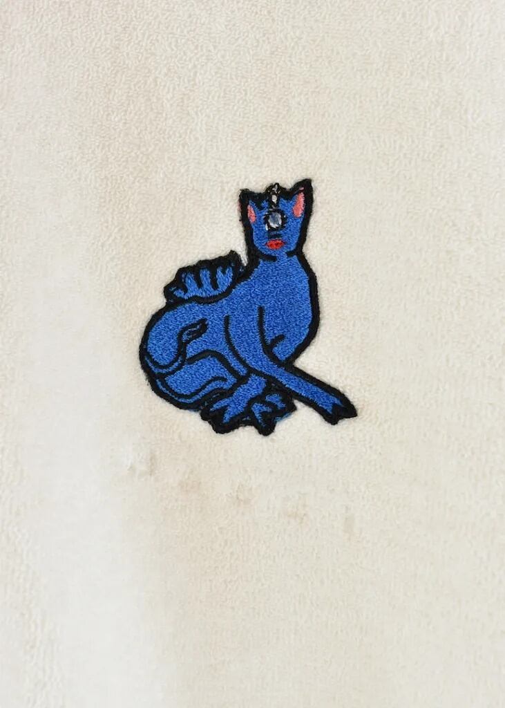 胸元に刺繍のグラフィックパッチとロゴ