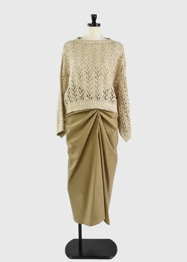 BRUNELLO CUCINELLI|L22S-BRN-SK12 "Hi-Tech Cotton Poplin Salon Skirt" BEIGE| SIZE:40